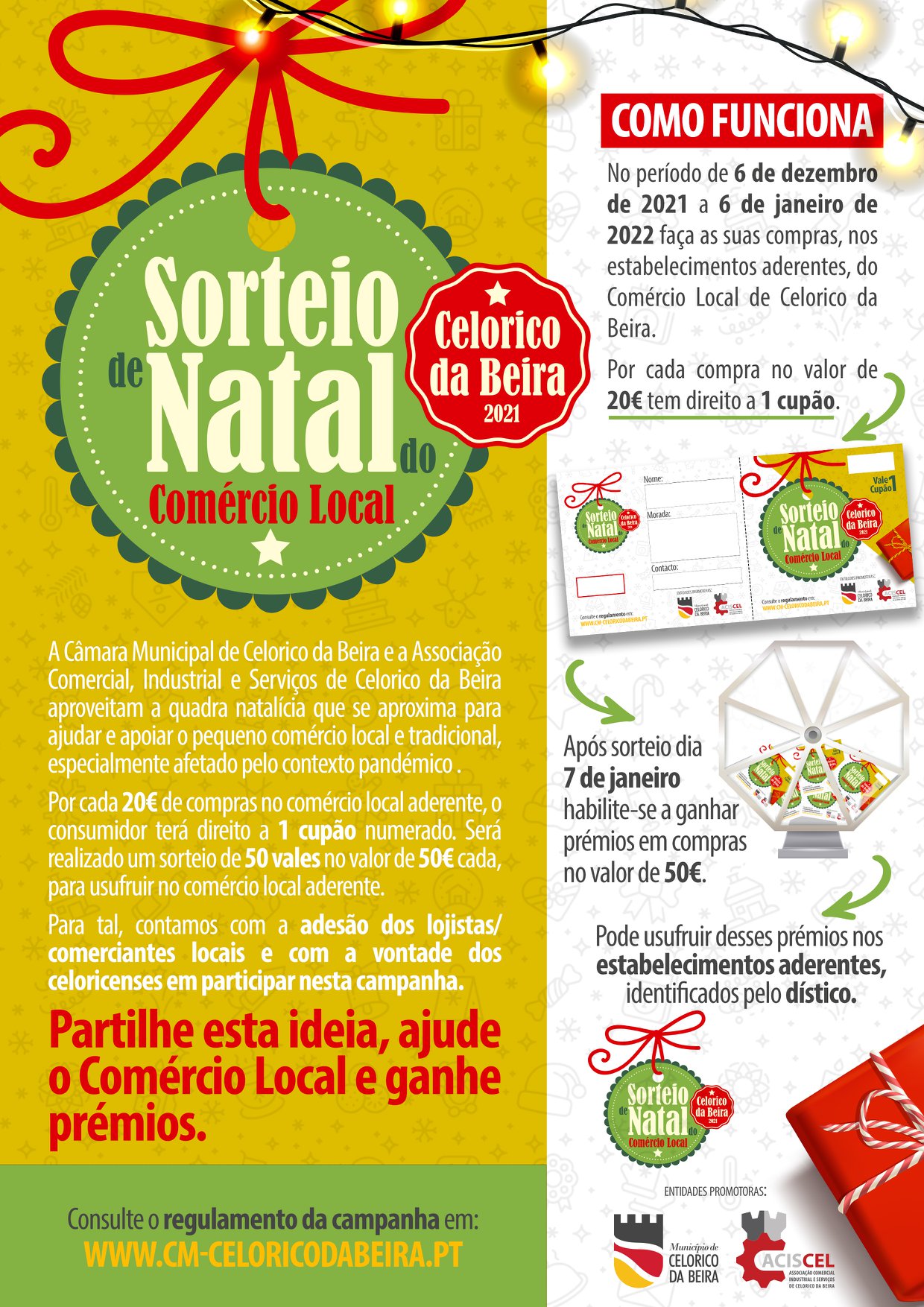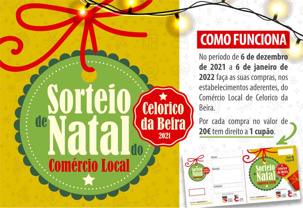 Vai ter lugar, no próximo dia 7 de janeiro de 2022, um Sorteio de Natal, promovido pela Câmara Municipal de Celorico da Beira em colaboração com a Associação Comercial, Industrial e Serviços de Celorico da Beira.
