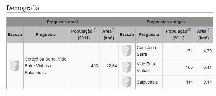 População em Cortiçô da Serra, Vide-entre-Vinhas e Salgueirais